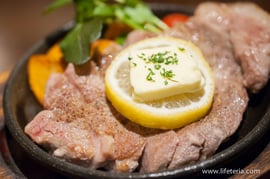 シンプルにレモンとバターの風味で食べる岩中豚、これ悪くはないんですけど、鉄板で調理するからか、火が入り過ぎてせっかくの岩中豚がもったいないですね。もう少しジューシーに仕上がっているといいんですけど。