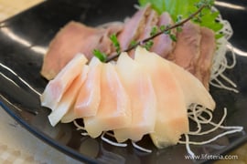海老もびっくりするほど立派なサイズ。味わいもありますが、こちらはちょっと固めでしたね。その他、刺身の下にも切落しやらなんやらいろいろと(笑)。