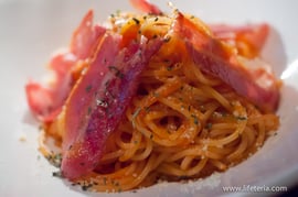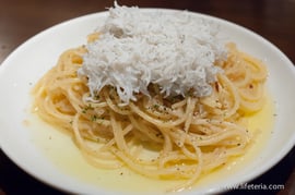 これでもけっこう盛ってますが、常連さんのなかにはパスタが見えなくなるくらいしらすをかけるかたもいらっしゃるそうで。