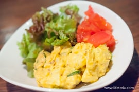 パンの上に目玉焼きをのせるのが本式ですが、こちらはパンの間に目玉焼きを挟むタイプ。もともと「クロックムッシュ/マダム」の「クロック」には「カリッとした」という意味があるそうで、その名の通り、カリッと焼き上がったパンが美味でした。