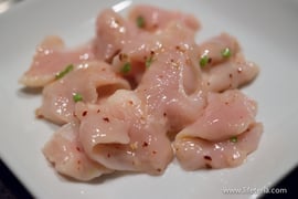 「シンシン」はモモ、「トウガラシ」は腕で、両者ともに比較的さっぱりした部位ですが、この日は肉質がきめ細かくより繊細な風味の「シンシン」のほうが美味でした。