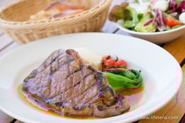 ・サーロインステーキ、パイナップル照り焼きソース、温野菜添え(1,700円)