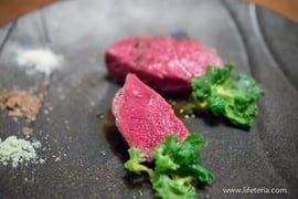 赤身の部位とは言え、かなりサシも入り赤身のウマさと脂のコクがほどよくバランスしていて美味でした。