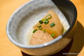 二品目の前菜には、蚫、フォアグラ、トリュフとスター的な食材が勢揃い。