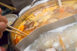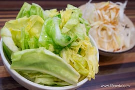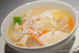 「水餃子」は野菜がたっぷりと入った具だくさんのスープ仕立て。これはおもしろいですね。ピリ辛のスープなんですが、個人的にはもっと優しい味で野菜のウマさを味わえるようなスープのほうが好みかな。