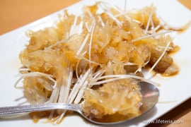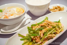 「ピーマンと豚肉の細切り炒め」はご飯のおかずにぴったりの食欲をそそる香ばしさ。個人的にはちょっと甘過ぎなのですが、まあ良しとしましょう。