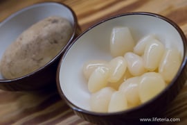 蚕豆のようなニョッキのなかにはほんものの蚕豆も散りばめられていて、ニョッキかと思って口に運ぶと実はほんものの蚕豆だった…なんていう楽しい仕掛けが隠されています。