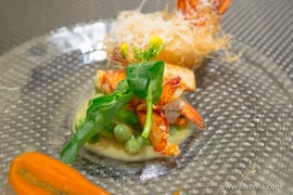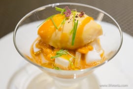 そしてカダイフに包まれてフリットにされたオマール海老、こちらがよかったです。火を入れ過ぎずオマール海老の甘さを強調しながらも、フリットすることで甲殻類の香ばしさを引出しているんですね。