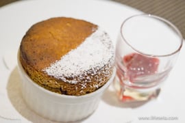 焼きたてのスフレをスプーンでひとさじ口に運ぶと…おおっ。これは蕗の薹です。思った以上に蕗の薹ですよ(笑)。しかし、もちろんしっかりとフレンチのデセールとして完成しているんですね。これには参りました。