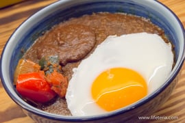 文字通り、玉子と豚肉の炒めものなんですが、うーん、あまり似た料理にお目にかかったことがないような気がします。ちょっと甘辛のタレが独特で、食欲をそそります。
