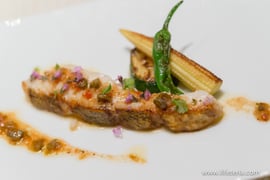 山形の「平牧三元豚」を使っているという豚肉は割としっかり目の火入れ。芯まできっちり火が通っていますが、もちろん火が入り過ぎていることはなく、肉質のしっとり感も感じられるよい頃合いでした。脂身は非常に少なめです。