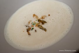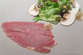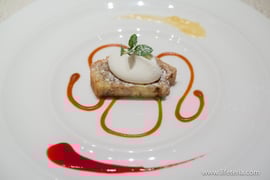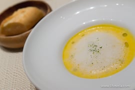 料理はひとつひとつセンス良く楽しめました。「揚げたてポテトチップス・カチョ・エ・べべ」なんておもしろいですね。「カチョ」はチーズ、「ペペ」はペッパーという意味だそうで、チーズと黒胡椒のシンプルなパスタあるじゃないですか、あれのポテトチップス版ですね。