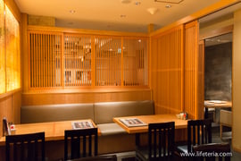 扉を開けるとゆったりとしたテーブル配置のぜいたくな空間が広がります。