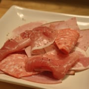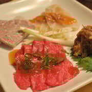 極上のサシが入った和牛カルビや、雪のように白い脂身が層を描く豚ロースを、炭火でサッと炙って、塩と胡椒でシンプルに味付けして食べる。